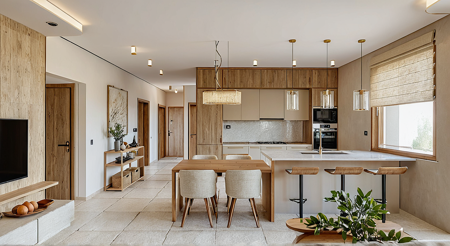 A természetes anyagok, a visszafogott színek és a tágas terek együtt olyan atmoszférát teremtenek, amelyben a tér nemcsak szép, hanem lélekemelő.