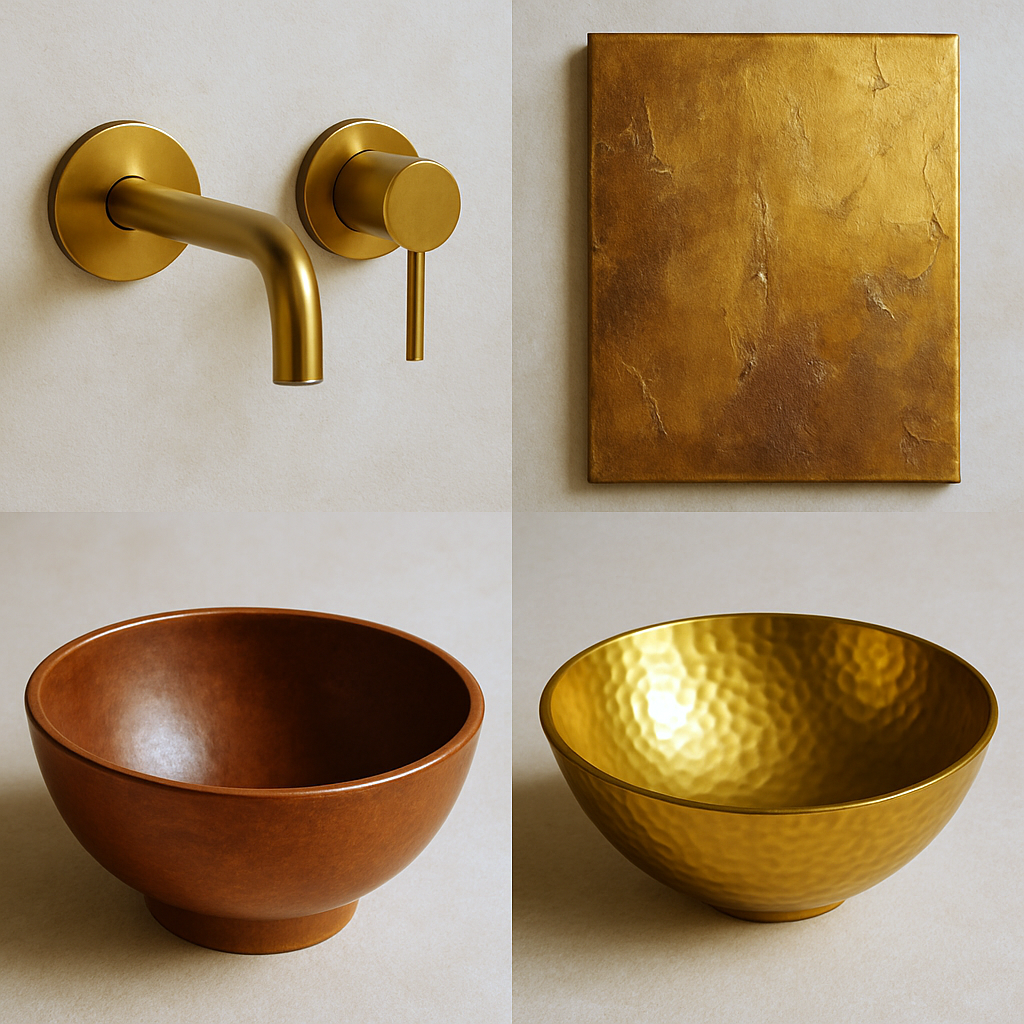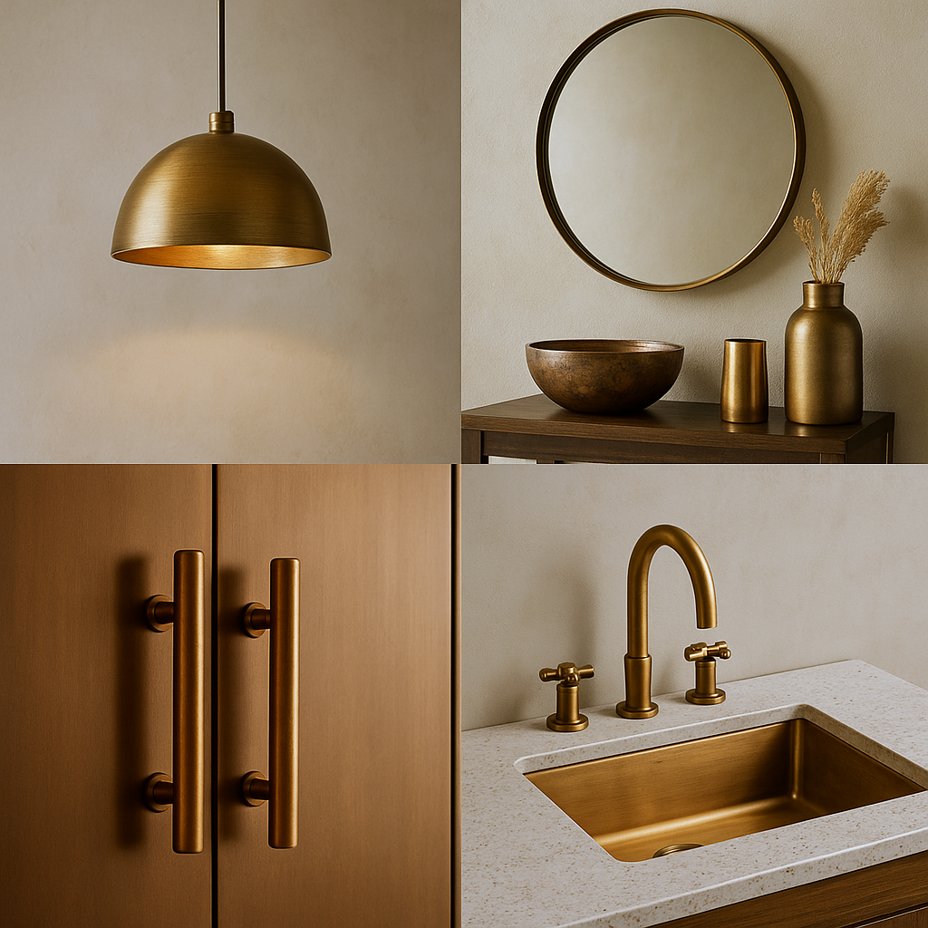 Bronz, antik arany, vörösréz és selyemfényű sárgaréz – ezek a tónusok lágyabb, otthonosabb atmoszférát teremtenek.