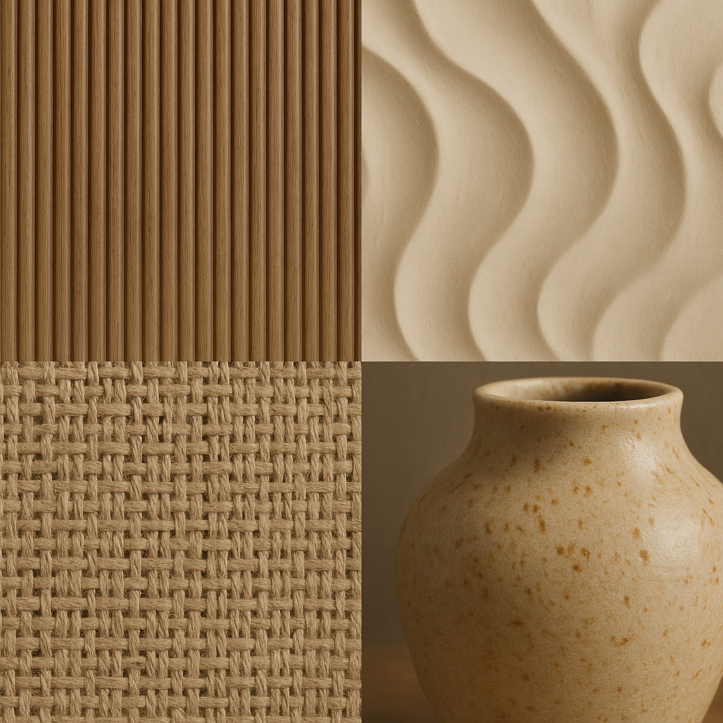 Ezek a felületek mélységet, karaktert és természetközeli esztétikát adnak anélkül, hogy túl hivalkodók lennének.